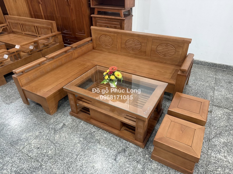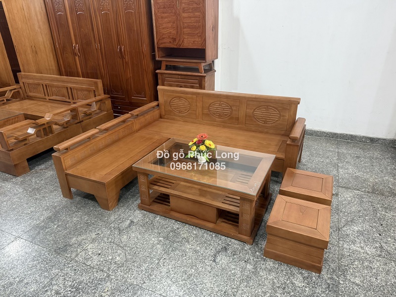 Sofa góc L gỗ Đinh Hương 2m10cm x 1m60cm
